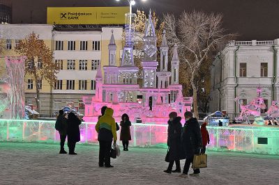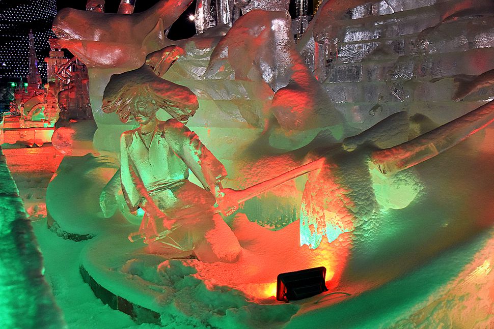 Сейчас здесь проходит международный фестиваль ледовой скульптуры «Европа-Азия» – десять команд скульпторов создали незабываемые композиции по мотивам цикла детских книг «Волшебник Изумрудного города» Александра Волкова. Тему выбрали сами горожане в ходе конкурса. Кроме того, ее одобрили власти.