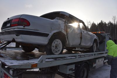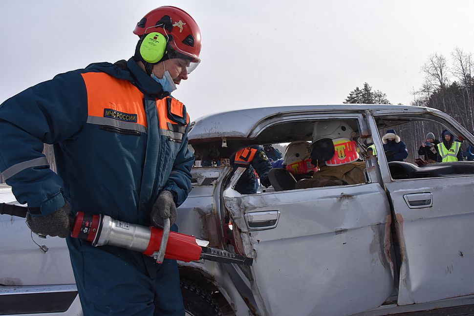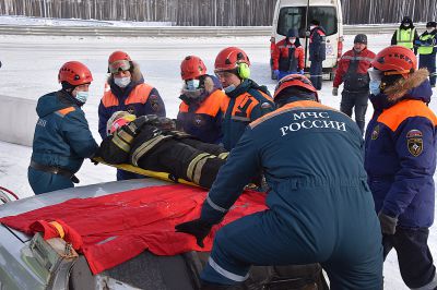 По легенде учений произошло опрокидывание легкового автомобиля из-за снежных заносов. Пострадало два человека. Спасательные службы извлекли пострадавших из машины, срезав крышу. Пострадавших эвакуировали на скорой.