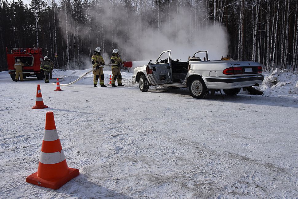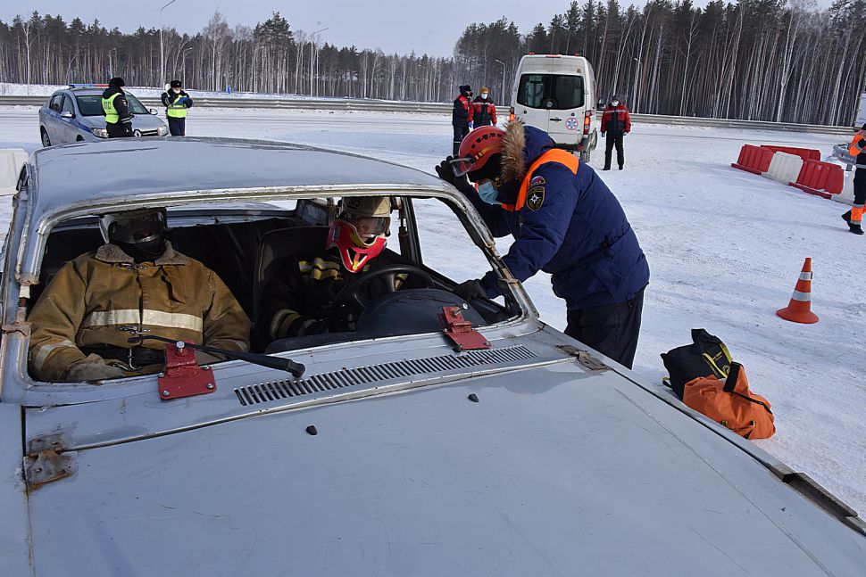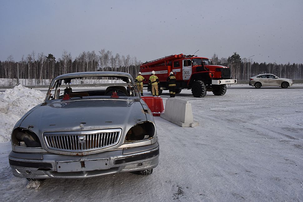 Сегодня на участке Екатеринбургской кольцевой автодороги прошли учения дорожных спасательных служб по ликвидации последствий чрезвычайных ситуаций. И все это при двадцатиградусном морозе.