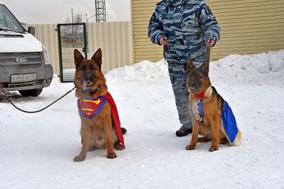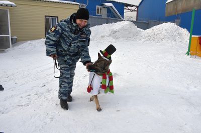 Кроме работы, кинологи еще и проводят костюмированные представления с участием собак. Четвероногие демонстрируют общий курс дрессировки для детей из неблагополучных семей, которые проживают в подшефных организациях, к примеру, для детей организации «Умка» в Сухом Логу.