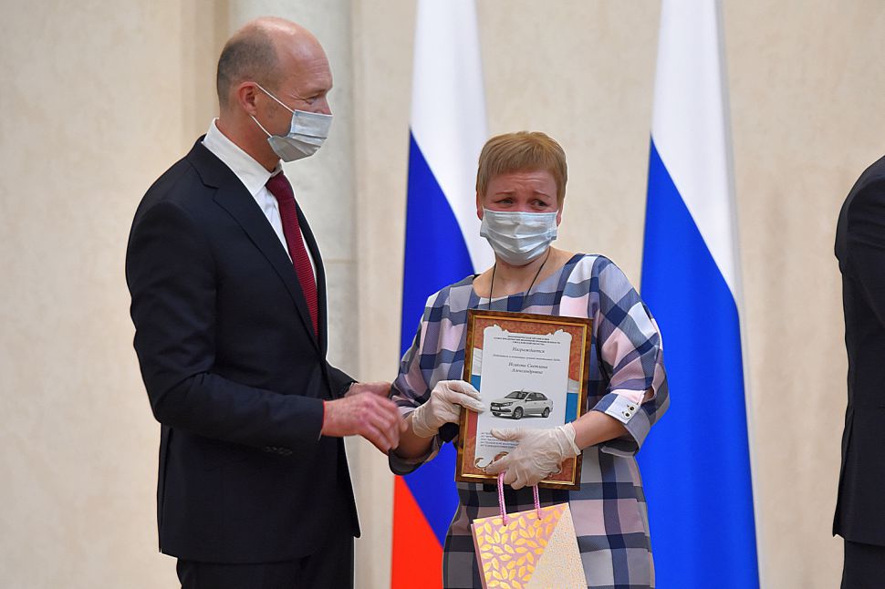 «Я очень рада получить такой подарок. У меня нет прав, да и времени учиться нет, заставлю дочь возить меня. Продавать машину точно не буду – это мне на долгую память», – поблагодарила Светлана Исакова.