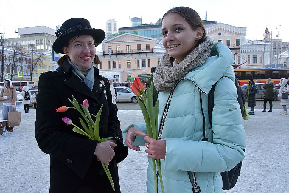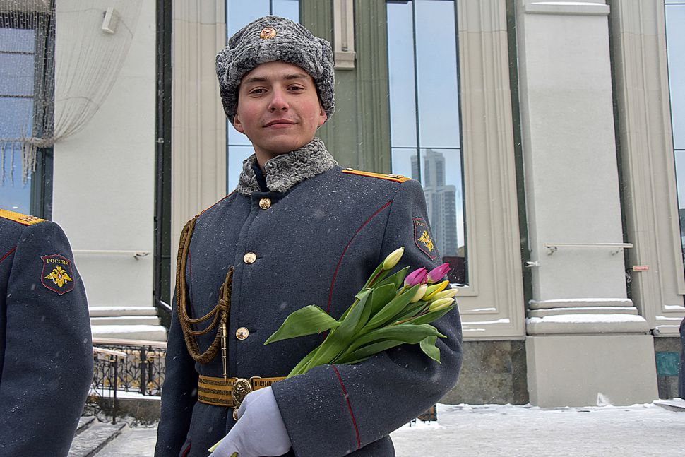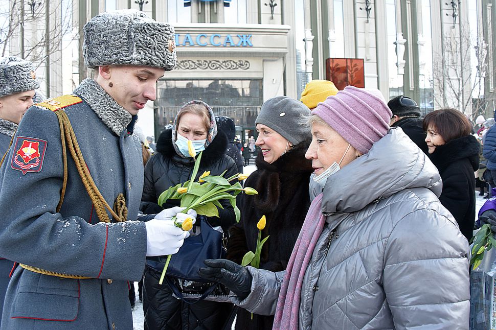 Фоторепортаж: военные подарили женщинам Екатеринбурга цветы и улыбки