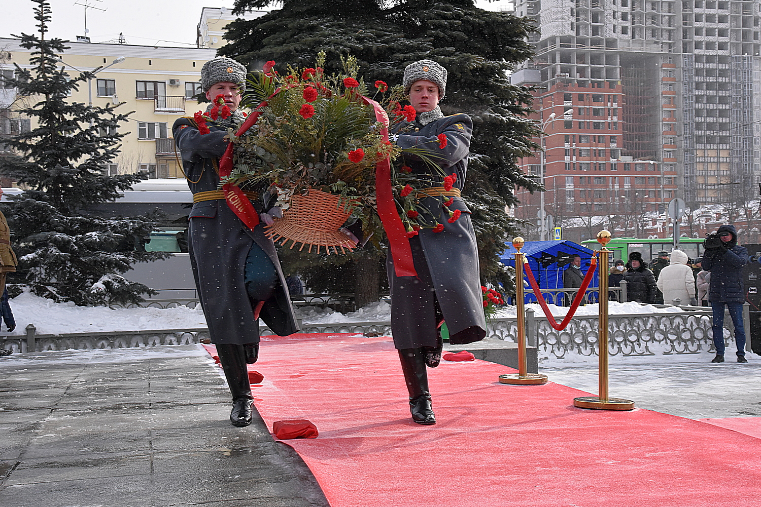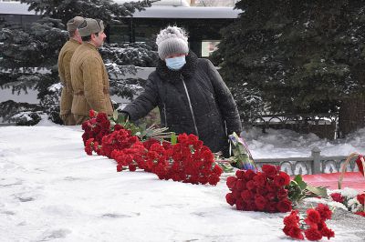 Корзины цветов сегодня по традиции возложили солдаты роты почетного караула Центрального военного округа.