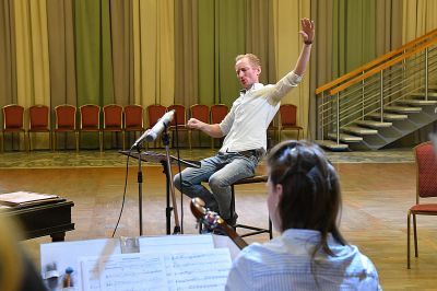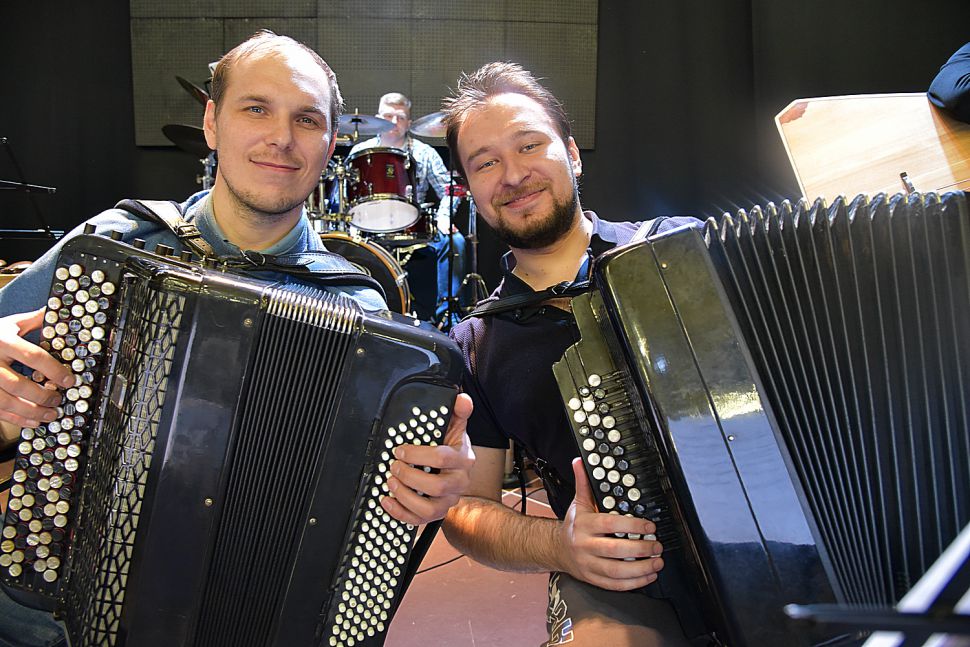 Кульминацией праздника стала пресс-репетиция. Музыканты вместе журналистами исполнили произведение «Шутки» Гайдна. Наш фотокорреспондент Борис Ярков солировал маракасами.