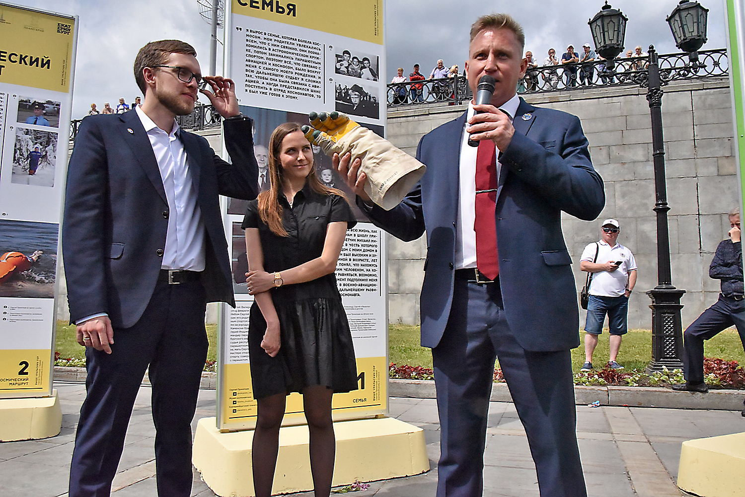 Космонавт также подарил Екатеринбургскому планетарию свою космическую перчатку, которой он пользовался во время выход в открытый Космос.