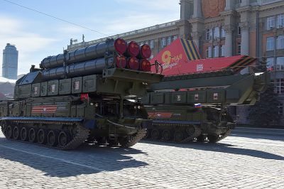 Механизированная колонна парада Победы насчитывала более ста образцов современной и исторической военной техники. Впервые были показаны боевые машины поддержки танков БМПТ-2 «Терминатор», зенитный ракетный комплекс средней дальности Бук-М3 и бронированные комплексные аппаратные связи П230Т на базе бронеавтомобилей «Тигр».
