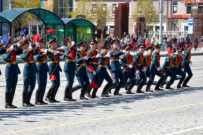 В ходе генеральной репетиции парада по главной площади Екатеринбурга в строю торжественным маршем прошли около 20 парадных расчетов, всего 2,5 тысячи военнослужащих. Впервые в параде войск гарнизона примут участие воспитанники Екатеринбургского суворовского училища и девушки-курсанты Уральского института МВД.