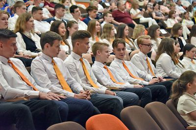Первоклассники подготовили трогательное выступление для выпускников, а классные руководители и педагоги школы исполнили для них песню. Также, следуя традициям, выпускники исполнили вальс.