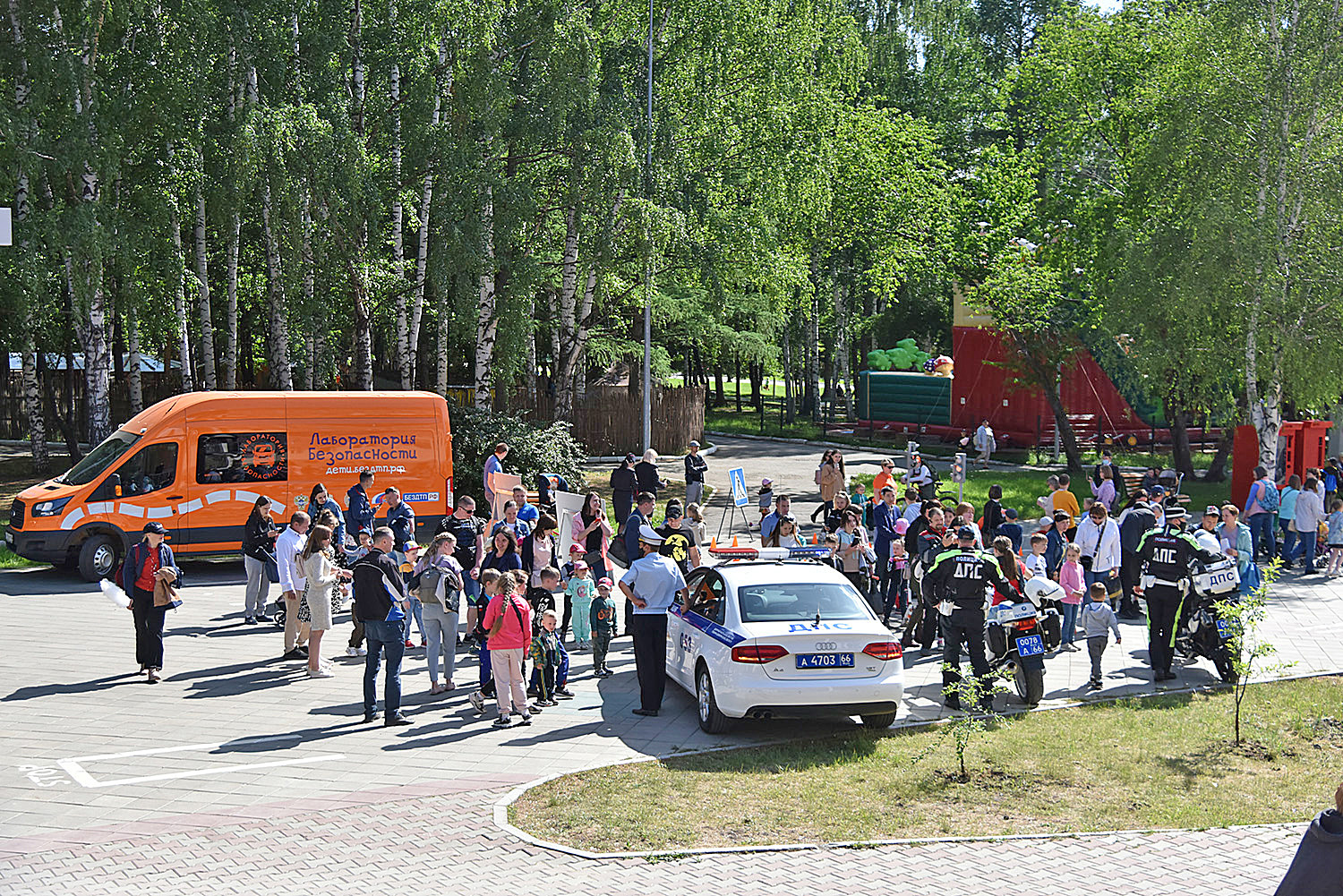 Рядом с вокзалом Детской железной дороги была развернута лаборатория безопасности от ГИБДД Екатеринбурга.