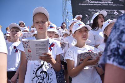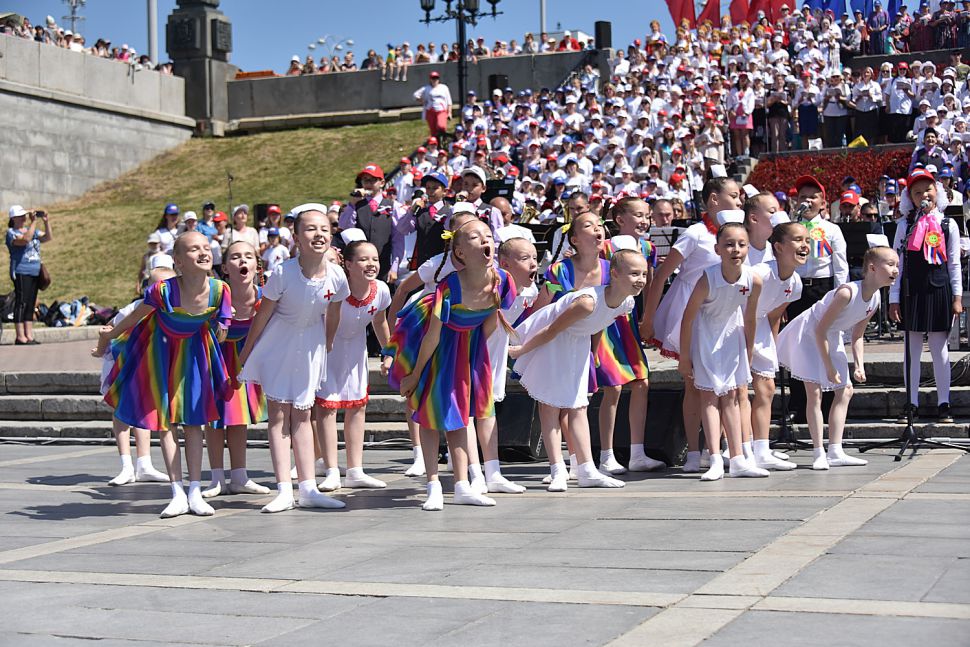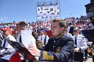Пению аккомпанировал сводный духовой оркестр под управлением Александра Павлова.