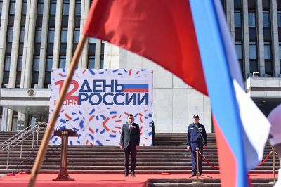 Утром у Дома правительства состоялось вручение флагов России 70 добровольческим и патриотическим организациям Среднего Урала.