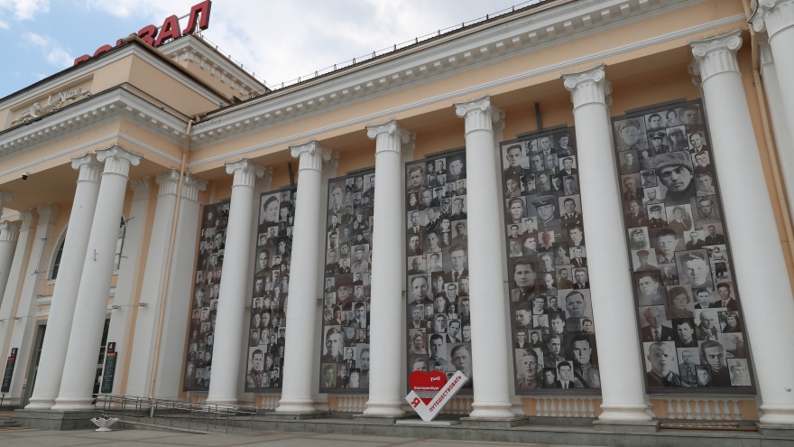 Портреты фронтовиков вновь появились на фасаде вокзала в Екатеринбурге