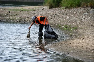 Фоторепортаж: с начала года коммунальщики выловили из Исети 15 тонн мусора