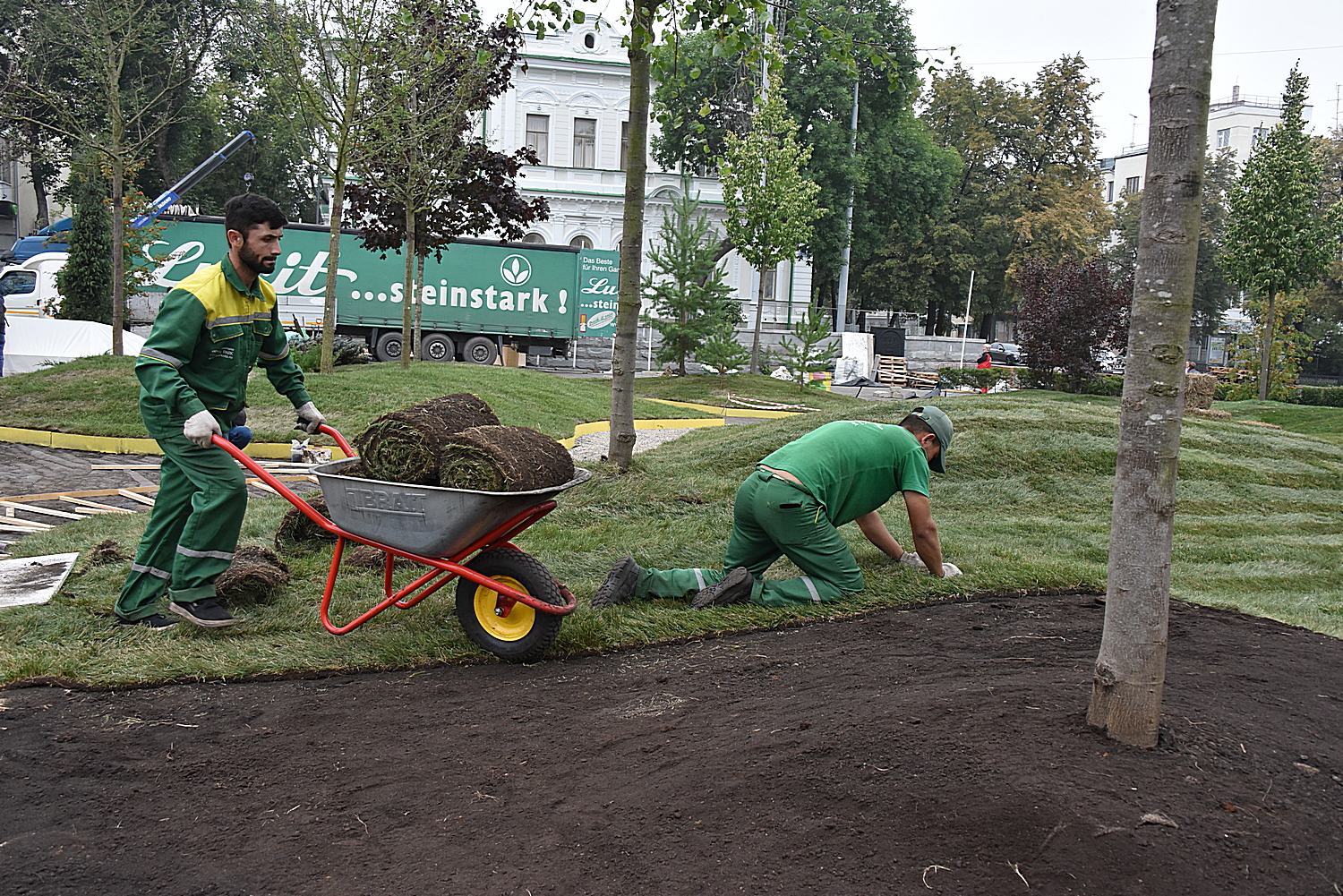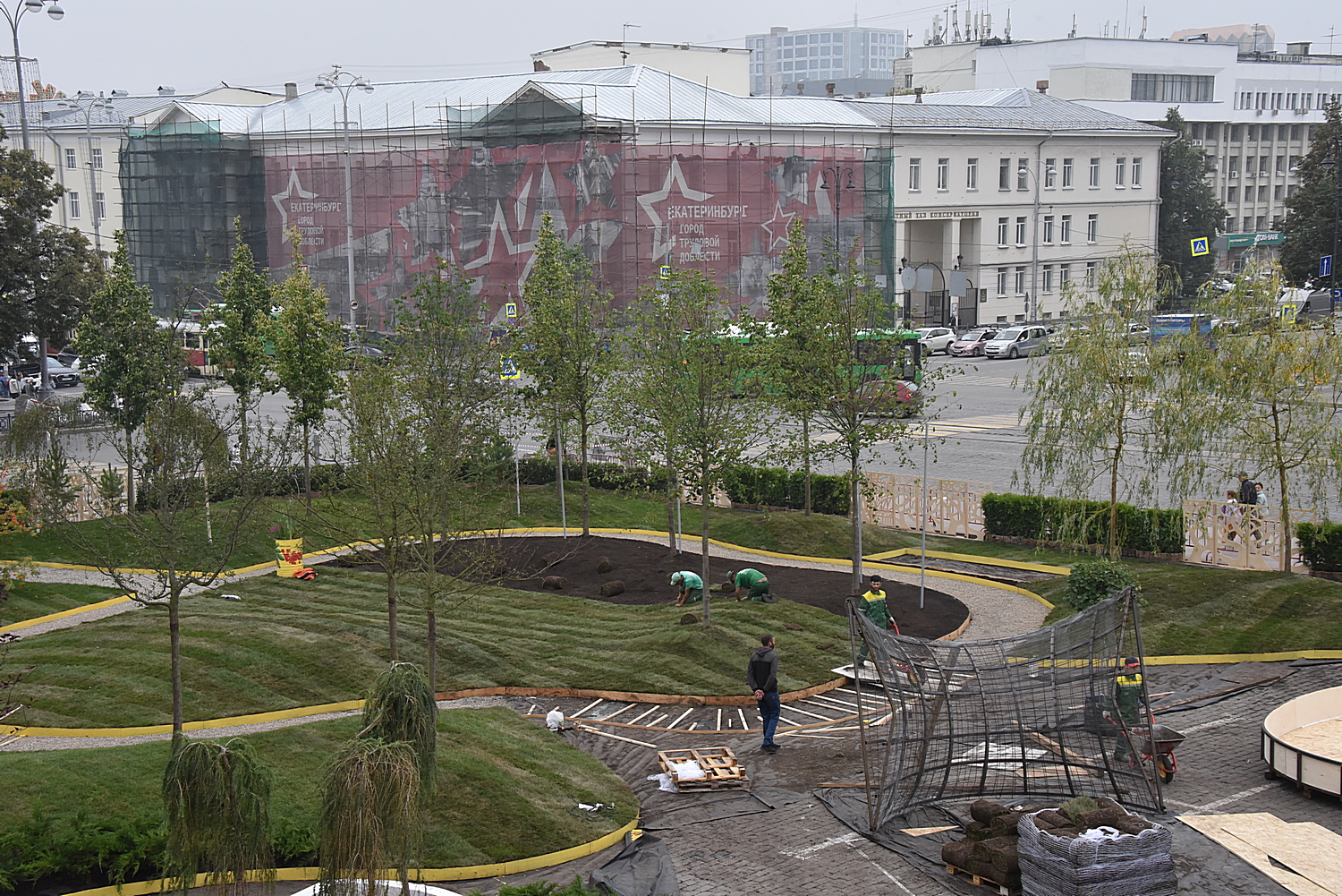 Сейчас парковка в центре Екатеринбурга преображается в зеленый парк, что можно видеть на снимках нашего фотокорреспондента Бориса Яркова.