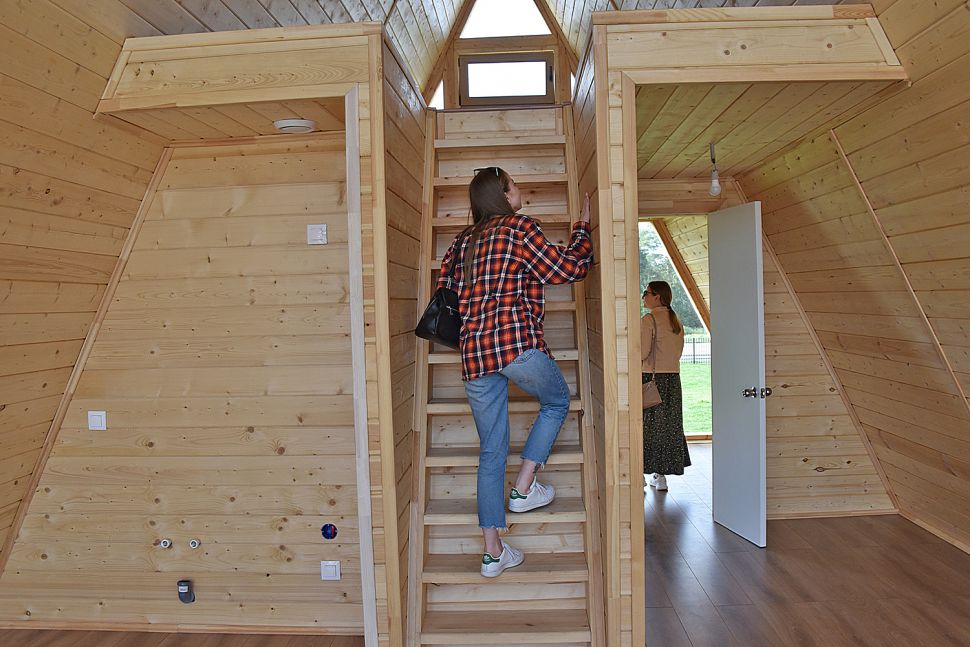 На выставке представлены дома пяти типов: это барнхаус, фахверк, а-фрейм, хай-тек и скандинавский стиль. На каждом доме есть QR-код, ведущий на аудиогид по нему и его подробное описание.