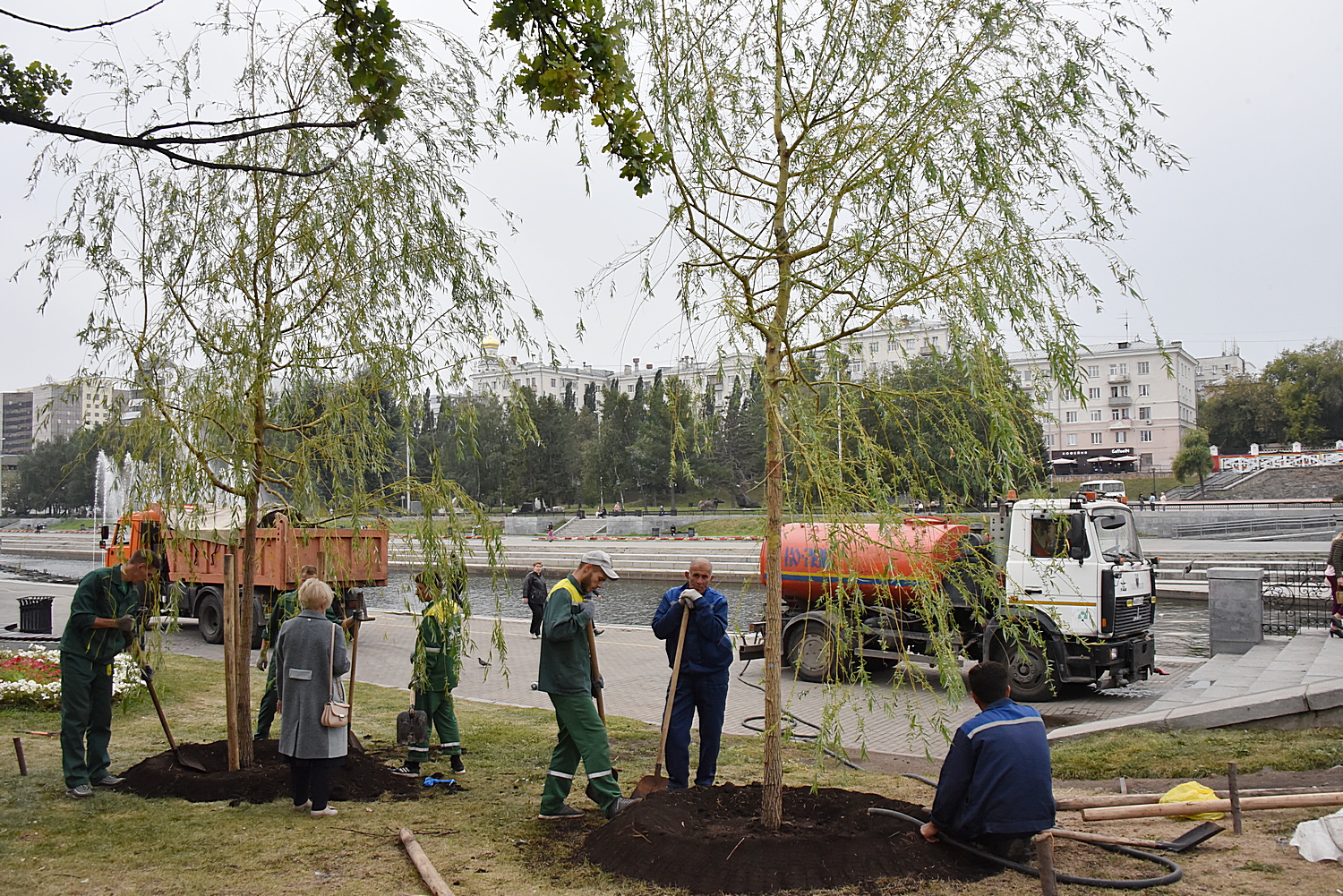Сегодня в Историческом сквере состоялась посадка двух крупномерных ив сорта «белая Тристис», а у киноконцертного театра «Космос» – трех яблонь сорта «Скарлетт» и одного клена остролистного «Роял Рэд».