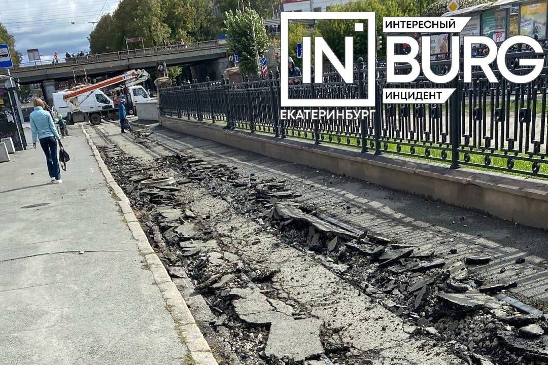 На проспекте Ленина на остановке «Бажова» трамвай сошел с рельсов, сообщает паблик ВКонтакте «Инцидент Екатеринбург».