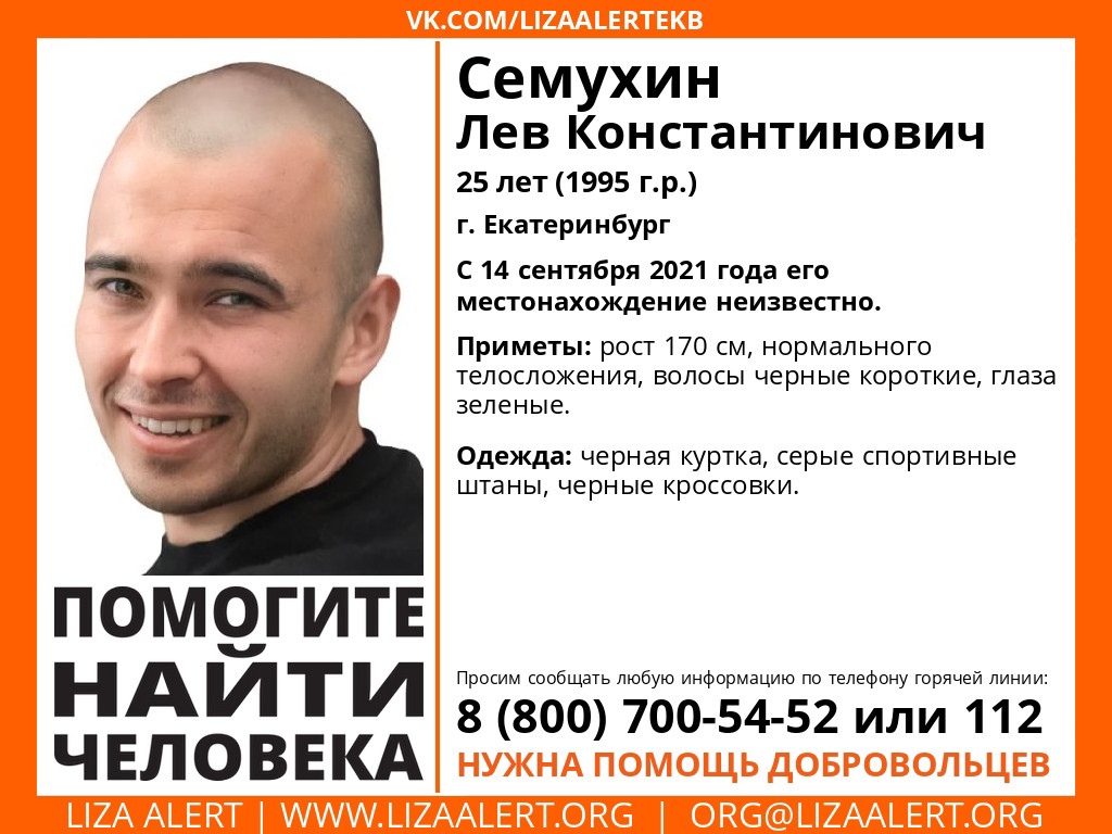 25-летний Лев Семухин вышел из дома 14 сентября на пару минут без документов и денег и пропал. Мужчина непьющий.