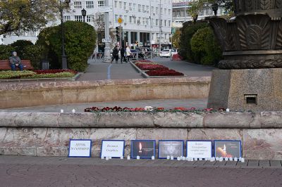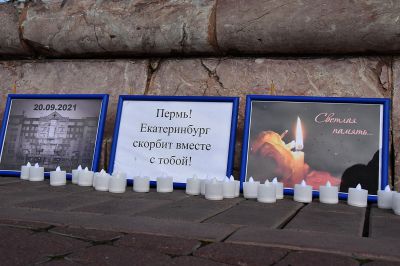 Сюда жители уральской столицы приносят цветы, ставят свечи, отдавая дань памяти погибшим. Временный мемориал можно будет посетить до конца недели. Идея его создания принадлежит членам молодежного парламента Свердловской области.