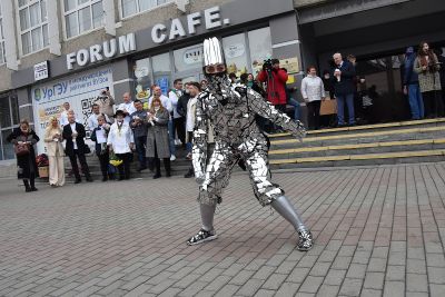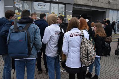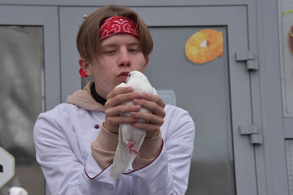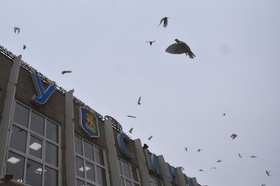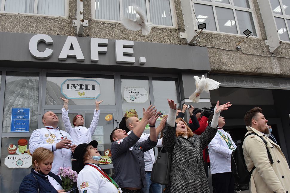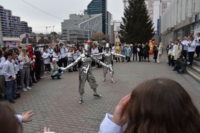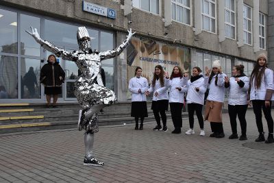 Сразу после церемонии награждения победителей конкурса на площади перед Уральским государственным экономическим университетом состоялся «Марш белого кителя». Его участники запустили в небо белых голубей.
