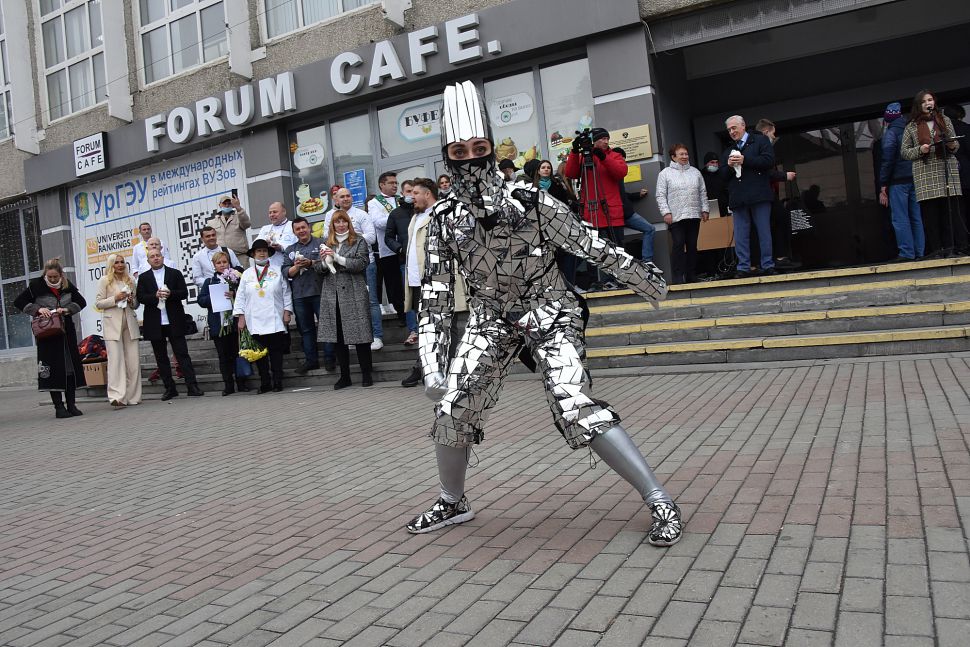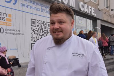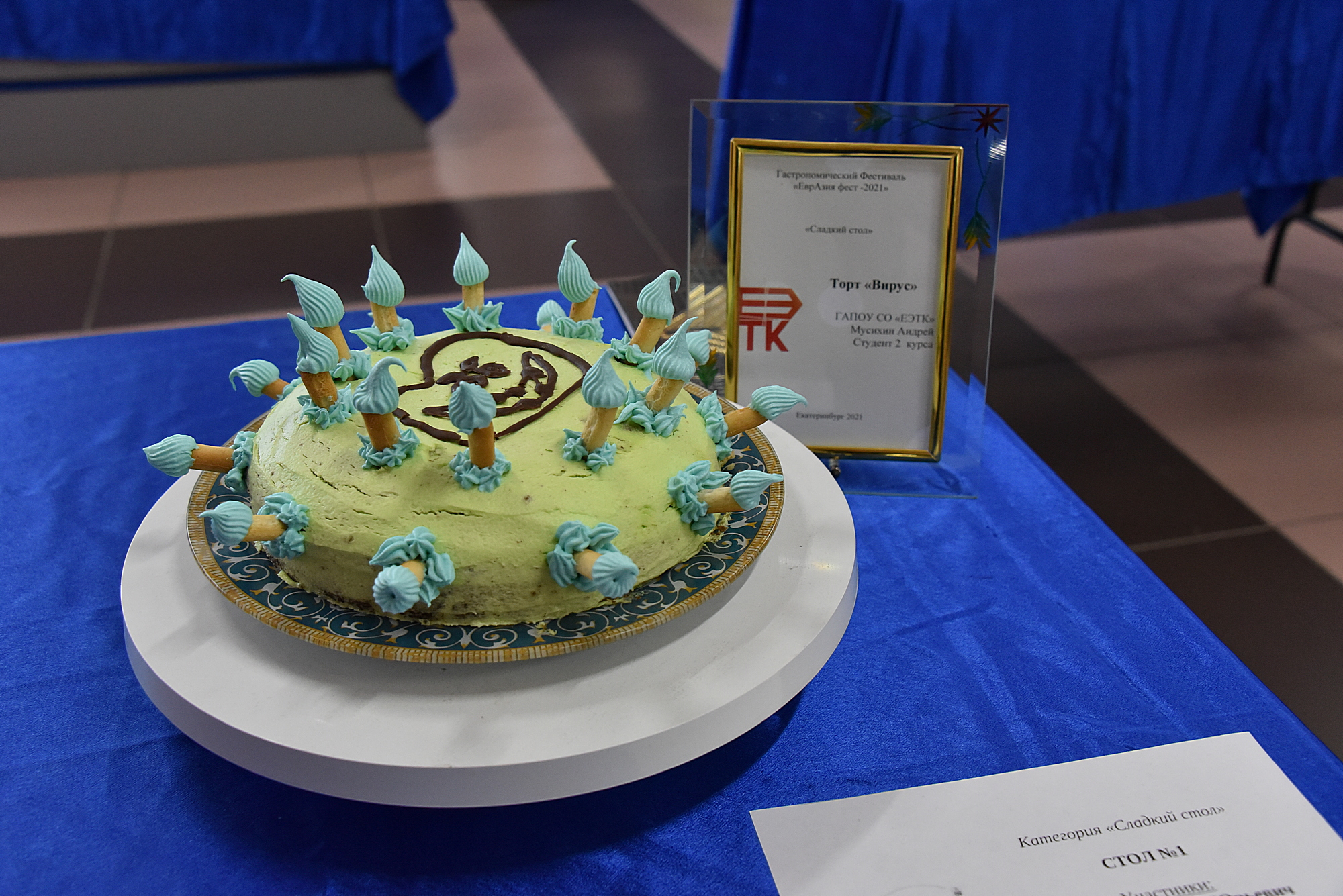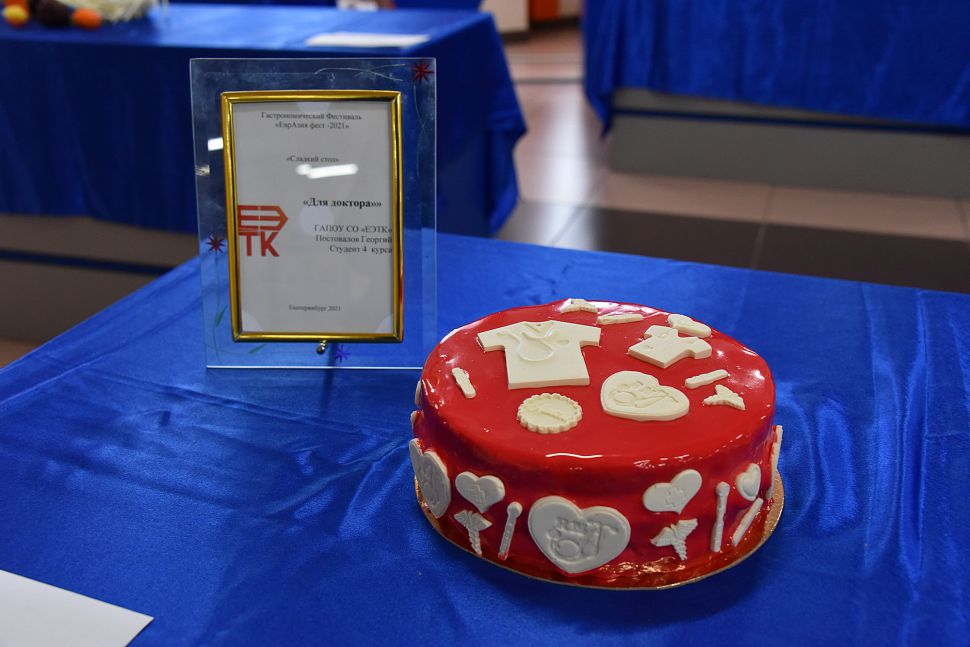 Гости праздника обратили внимание на торт с актуальным названием «Вирус». Его автором выступил студент второго курса Екатеринбургского экономико-технологического колледжа Андрей Мусихин.