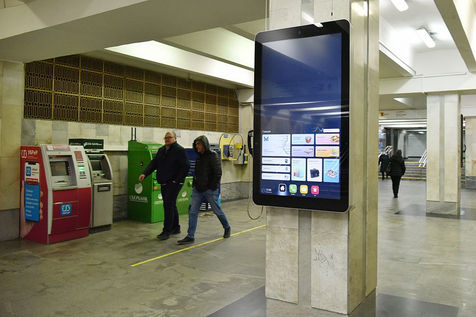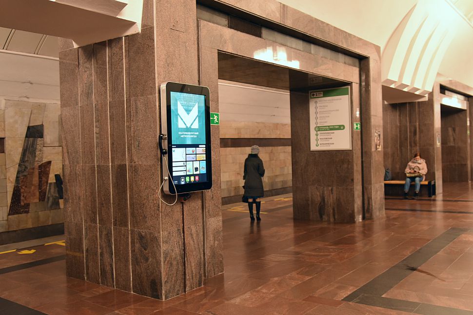 На станции метро «Площадь 1905 года» заработали три интерактивных терминала. Два из них установлены под землей, на перроне станции, и один – при входе в подземку.