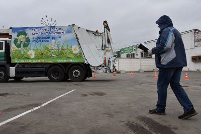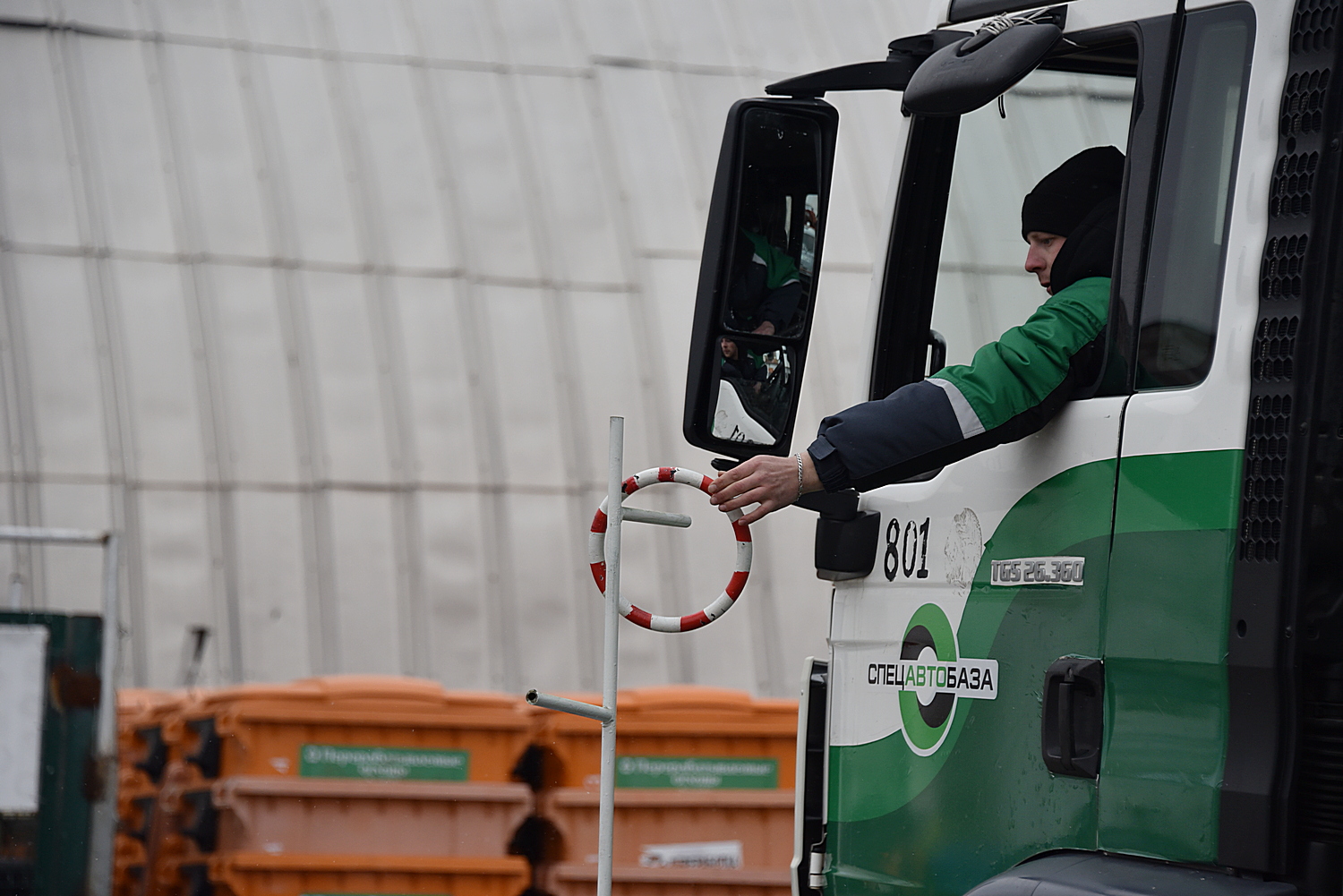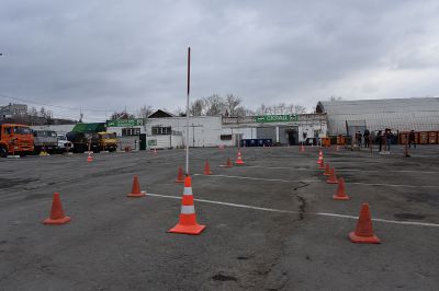 Водители спецтехники для вывоза отходов соревновались в технике точного маневрирования на местности.