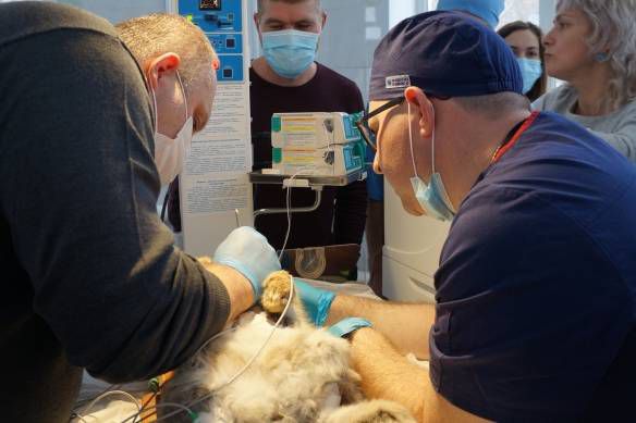 Во время обучающего семинара животным вводят наркоз и моделируют разные клинические ситуации, осуществляя искусственную вентиляцию легких и одновременно контролируя жизненно важные показатели: пульс, дыхание и температуру тела.
