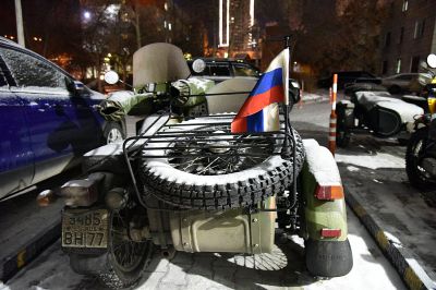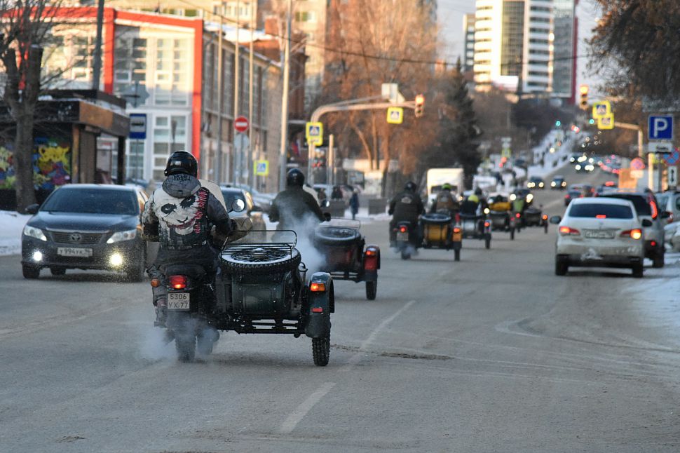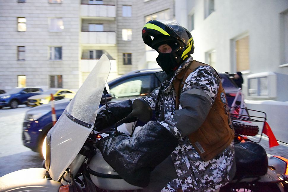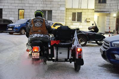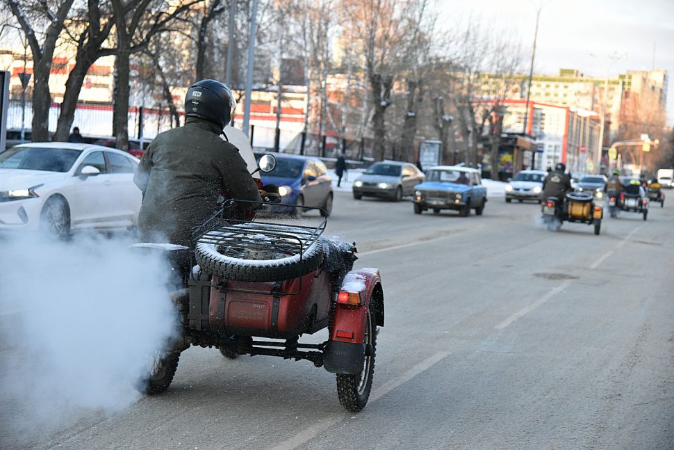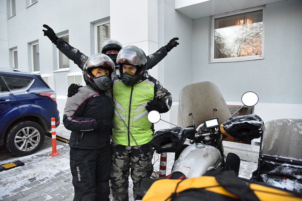 Мотопробег стартовал в Москве 20 ноября, путешественники делали остановки в Нижнем Новгороде, Казани, Ижевске, Перми и теперь в Екатеринбурге, откуда утром выехали в Ирбит.