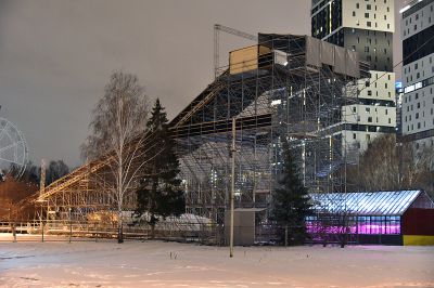 Как ранее писал «УР», справа от центрального входа в декабре откроется Парк горок, где центральным объектом станет огромная супер-горка с тремя скатами длиной 140 метров. Первый находится на высоте 10 метров, два других на высоте почти 17 метров.