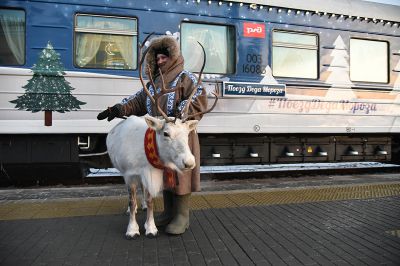 Фоторепортаж: поезд Деда Мороза привез в Екатеринбург оленя