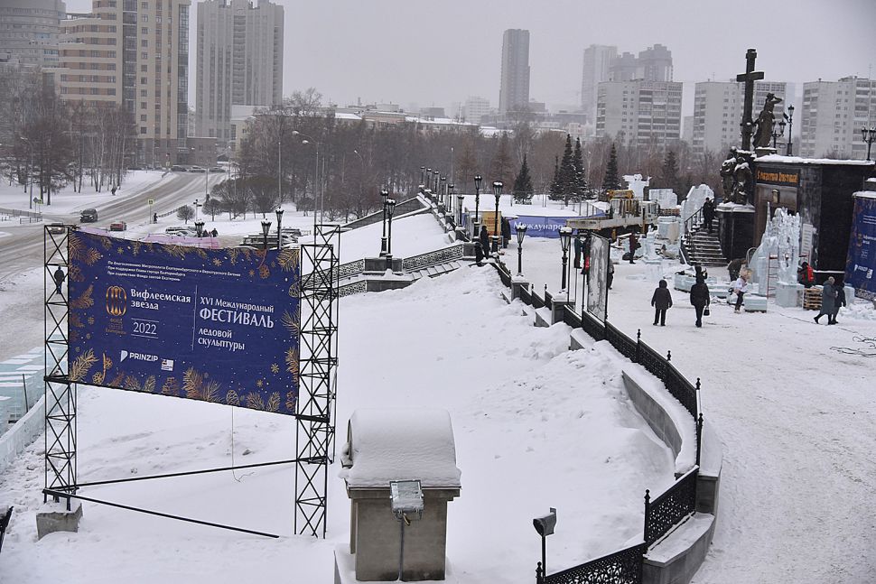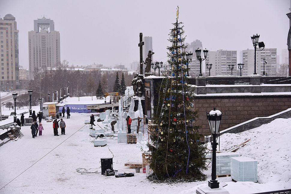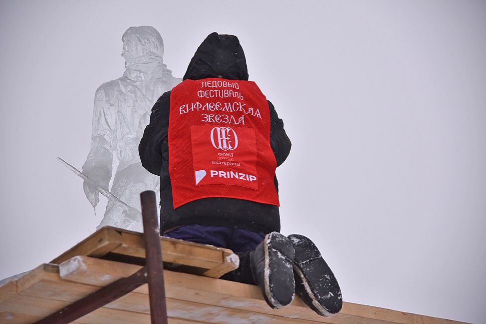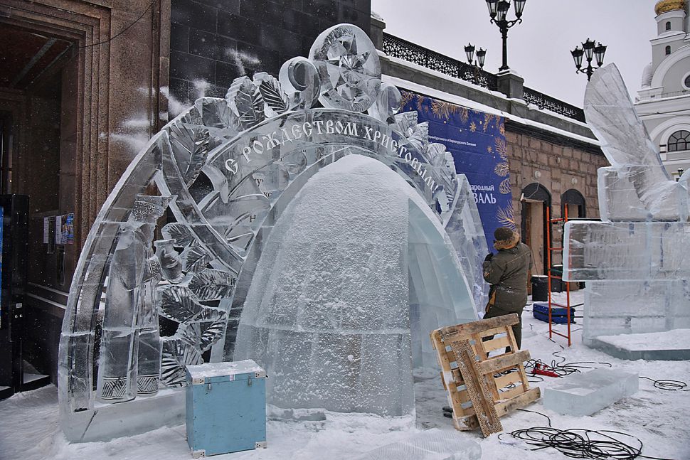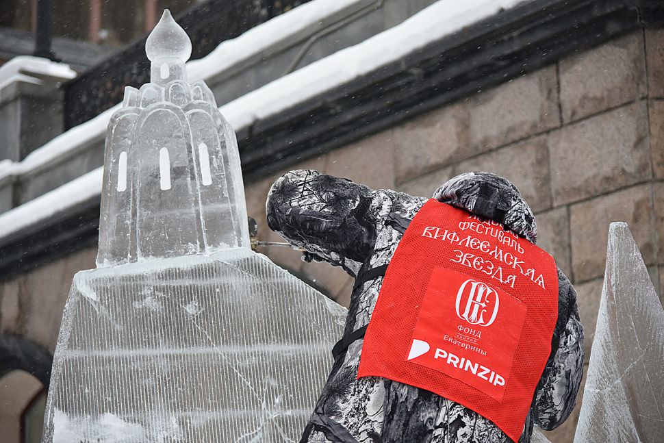 На площадке возле Храма-на-Крови в Екатеринбурге более сорока скульпторов и художников со всей страны приступили к изготовлению ледовых скульптур.