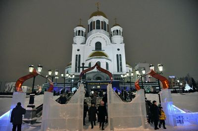 С 7 января у Храма-на-Крови жители и гости Екатеринбурга имеют возможность любоваться ледовыми скульптурами до самой весны, пока фигур не растают.