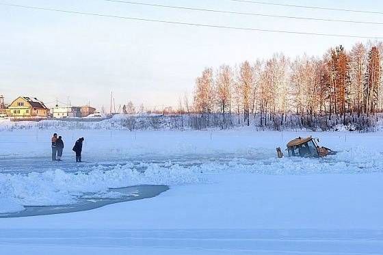 На городском пруду Серова трактор ушел под лед. Техника оборудовала купель