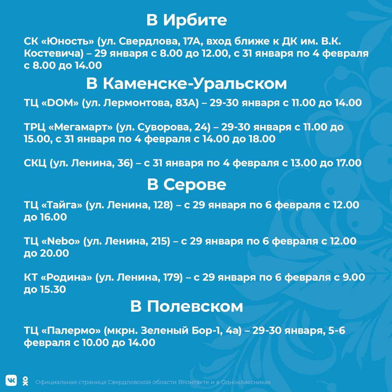 В Екатеринбурге с 31 января по 6 февраля можно вакцинироваться от коронавируса в торговых центрах.