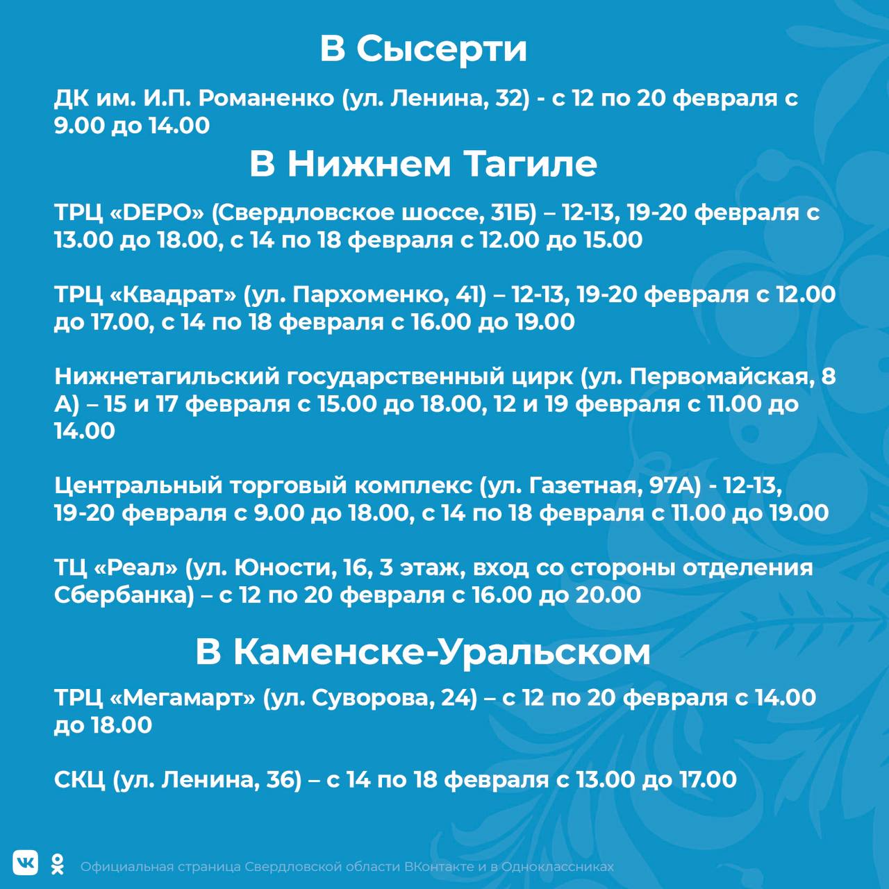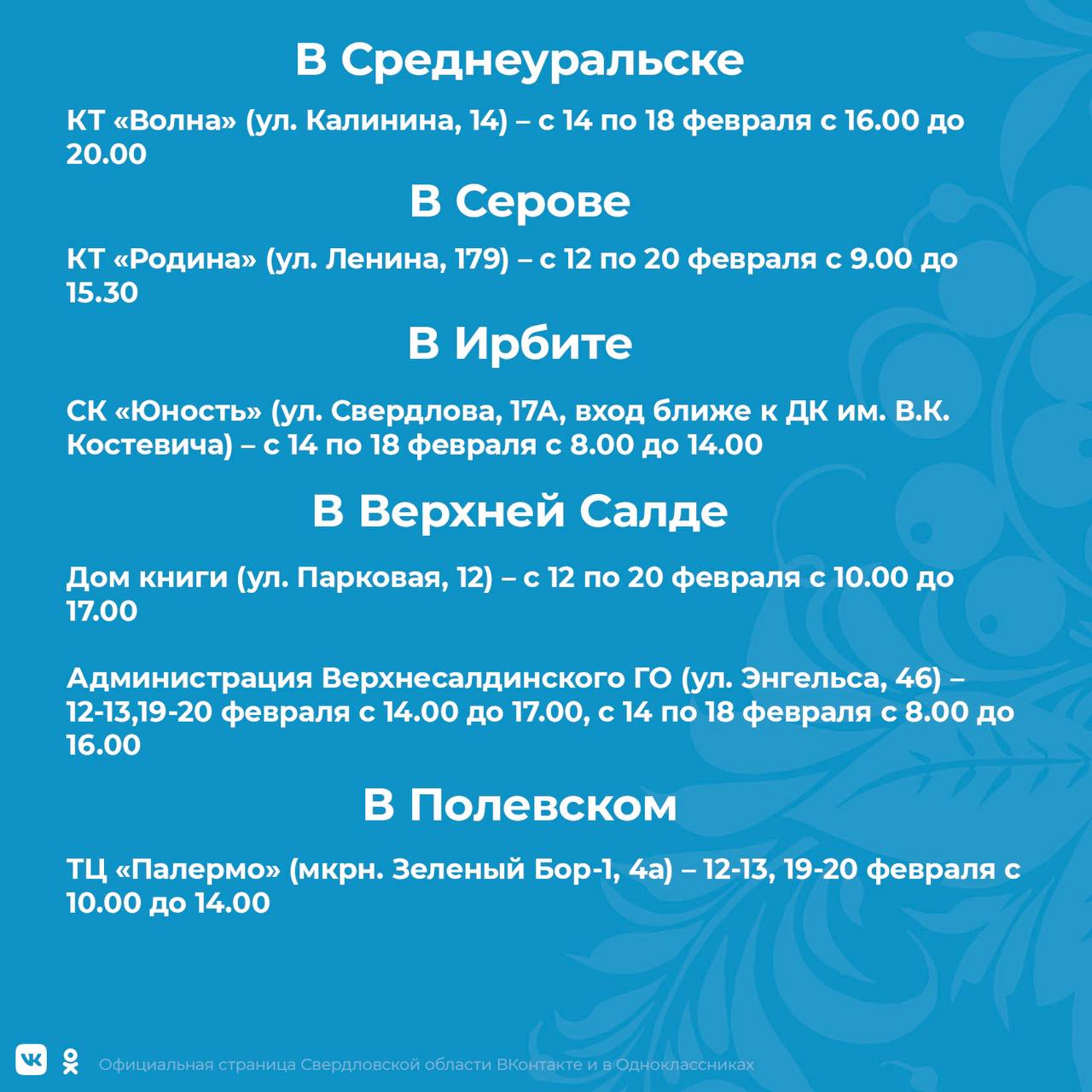 График работы пунктов в Екатеринбурге на неделю с 14 по 20 февраля: