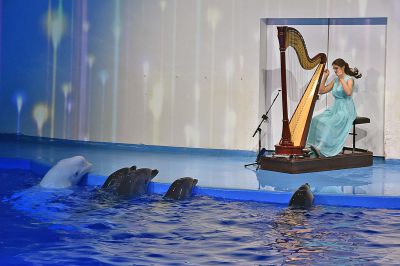 Сегодня в екатеринбургском Океанариум прошел концерт произведений Иоганна Себастьяна Баха и его современников на арфе для дельфинов и полярных китов.