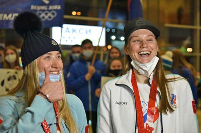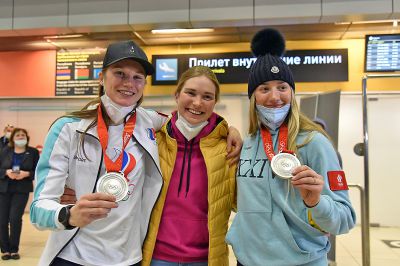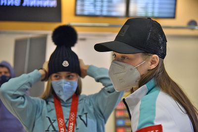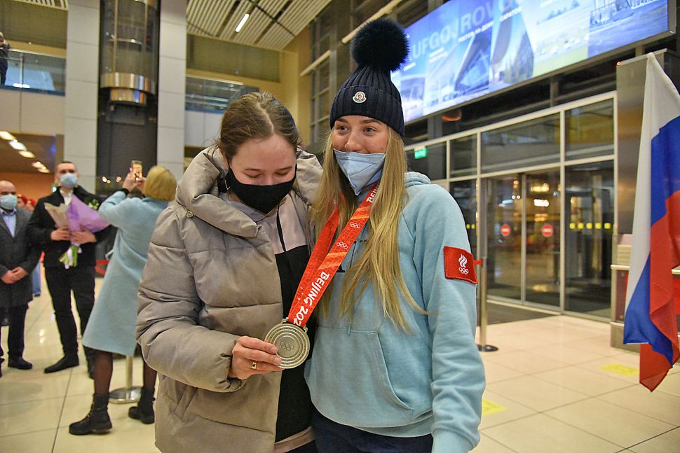 Сегодня ночью в Екатеринбург прилетели серебряные призеры Олимпийских игр в Пекине Светлана Миронова и Ирина Казакевич.