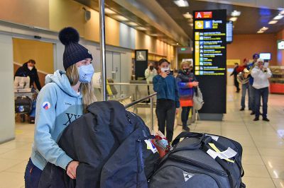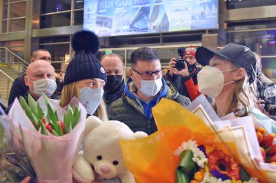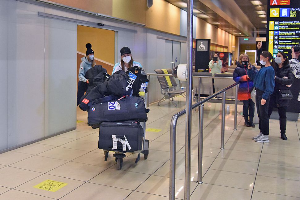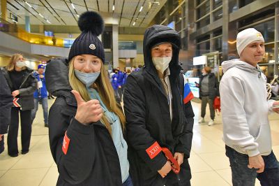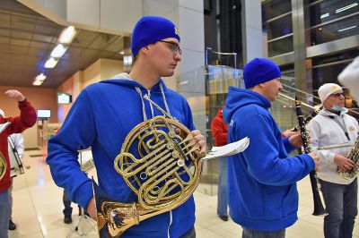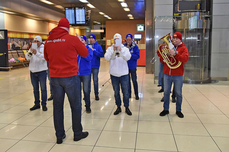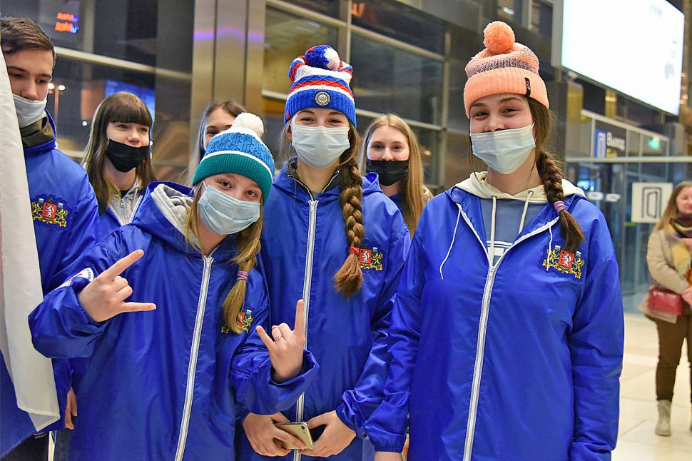 Уральских биатлонисток встречали в Кольцово с цветами и оркестром. Фото