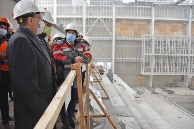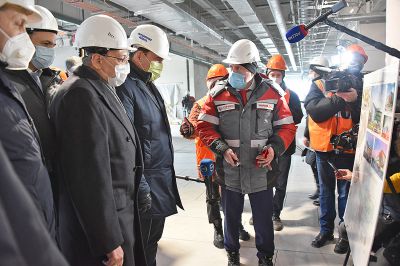 Евгений Куйвашев проверил, как идут работы во Дворце водных видов спорта. Здесь сегодня строятся чаши бассейнов, идёт устройство фасада, монтируются коммуникации.