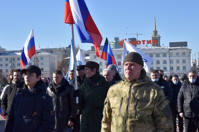 В Екатеринбурге прошел митинг в поддержку спецоперации на Донбассе. Фото