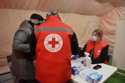 Здесь же были развернуты палатки для сбора гуманитарной помощи эвакуированным.