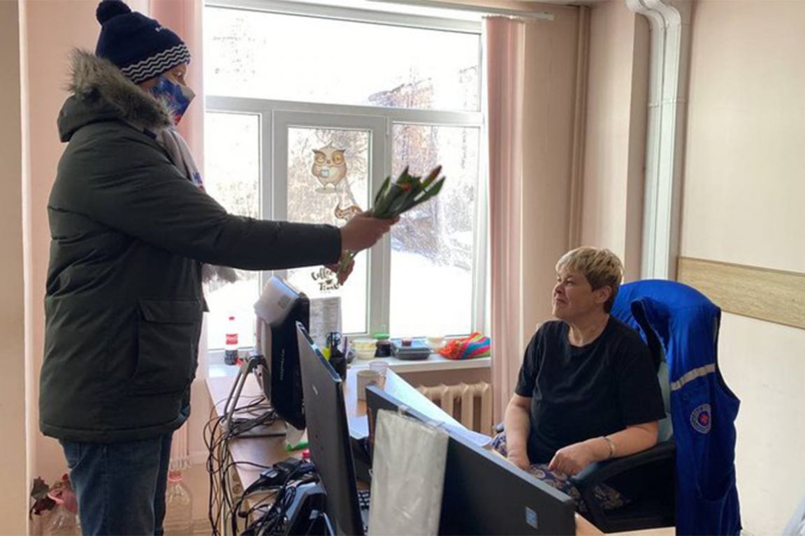 Волонтеры поздравили сотрудниц скорой помощи Екатеринбурга с 8 марта