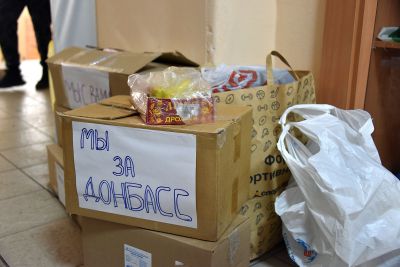 Пункт приема гуманитарной помощи работает на базе Дома добровольцев (улица Крылова, 2) в Екатеринбурге. Активисты принимают наборы с вещами, одеждой, лекарствами, продуктами длительного хранения. Сформированные партии отправляют в приграничные с Донбассом регионы, где организованы пункты временного размещения вынужденных переселенцев.