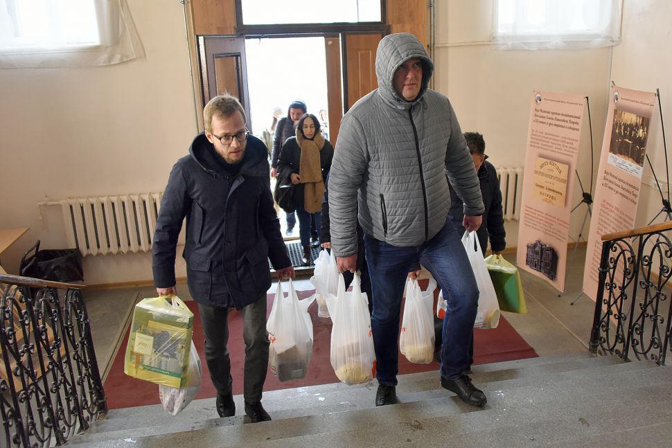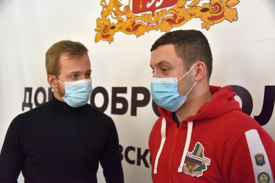 Наборы с продуктами и вещами первой необходимости приняли волонтеры Дома добровольцев.