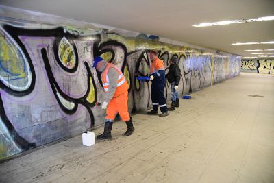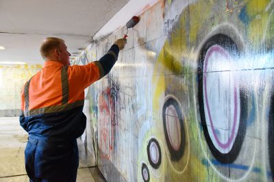 Отметим, коммунальщики ежегодно сводят краску на площади 24 тыс. квадратных метров в подземных переходах и с 19,3 тыс квадратов – с шумозащитных экранов.