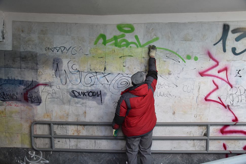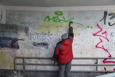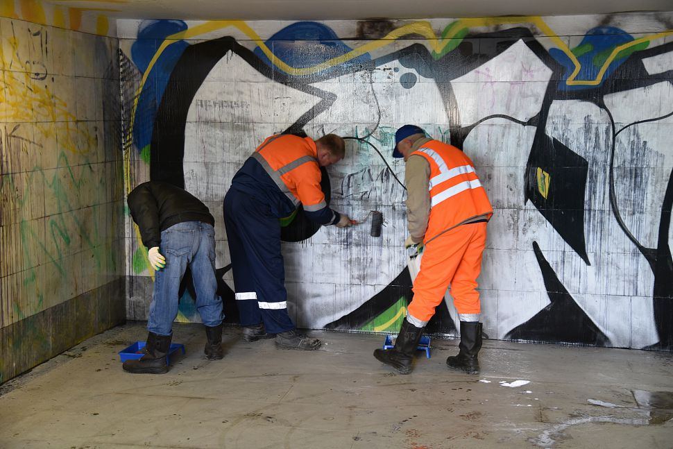 «Например, вчера мы привели в порядок один из подземных переходов города, а сегодня снова появились надписи. Мы оттираем рисунки различными способами. Надписи на штукатурке мы закрашиваем. На гранитной поверхности используем химию. К сожалению, люди, которые красят, не понимают, насколько тяжело и сложно убирать эти «художества», – уточняет Артем Репин.