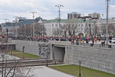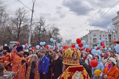 Сегодня, в праздник Светлого Христова Воскресения, от Свято-Троицкого кафедрального собора Екатеринбурга до Храма на Крови состоялся праздничный крестный ход.