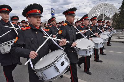В голове крестного хода шли юные суворовцы барабанщики, а также скауты Братства православных следопытов.