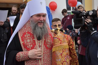 В крестном ходу также приняли участие ученики воскресных школ епархии вместе с родителями и педагогами.